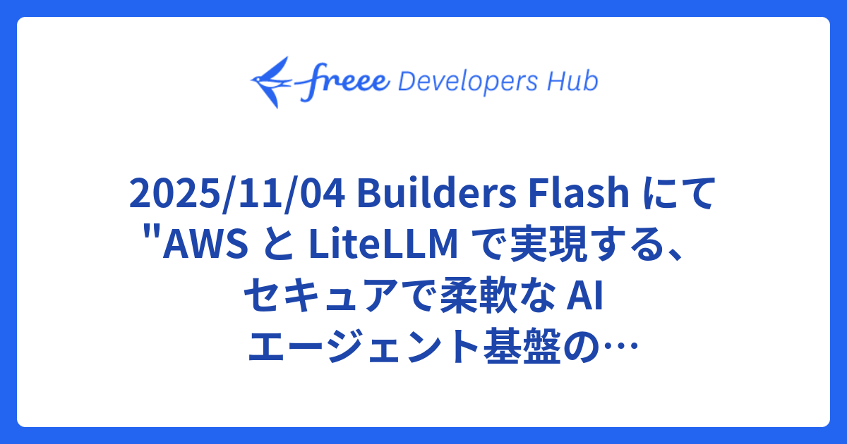 2025/11/04 Builders Flash にて "AWS と LiteLLM で実現する、セキュアで柔軟な AI エージェント基盤のアーキテクチャ" を公開しましたfreee Developers Hub2025/11/5 18:00