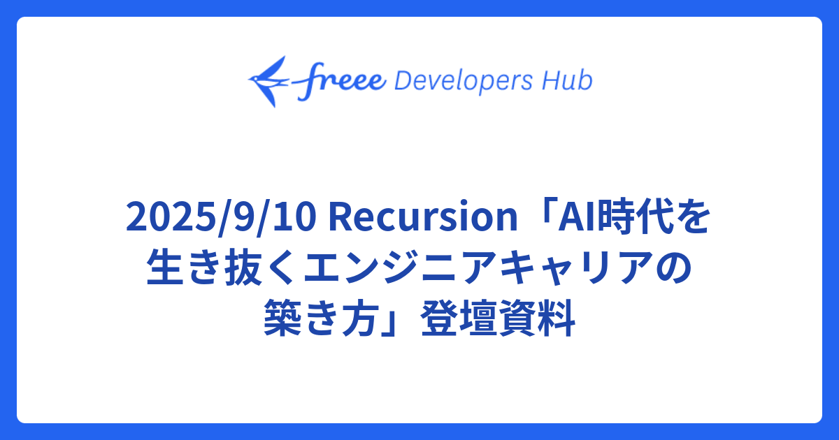 2025/11/11 AWSブログにて対談記事 "「その AI の精度が 1% 上がったとき、顧客価値は?」 freee が語る、価値創出論と AI ネイティブ組織への変革" が公開されましたfreee Developers Hub2025/11/12 14:00